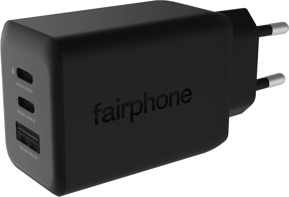 as neue Fairphone 65 W Triple-Port USB-C Schnellladegerät ist kompakt und leistungsstark, robust und fair hergestellt. Du kannst bis zu drei Geräte gleichzeitig aufladen, sogar deinen Laptop.